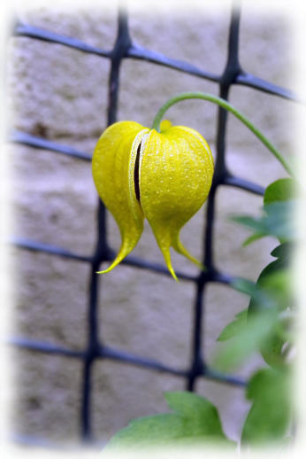 Information on the label: A compact Clematis that flower from Summer until Late Autumn, lemon-yellow,