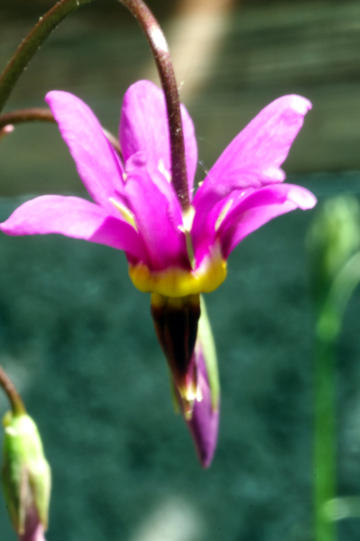 Dodecatheon pulchellumInformation on the label: Stems of multiple purple flowers with highly reflexed petals from May to June. Any good soil. Sun or part shade. Height: 25cm and Spread: 30cm.