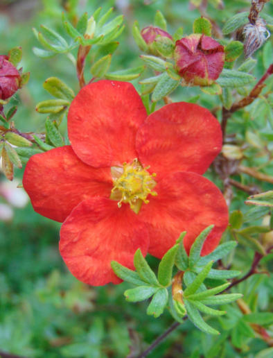 Potentilla Potentilla are family of perennials and deciduous shrubs grown for their clusters of small, flattish to saucer shaped flowers and for their foliage. List of Potentilla species in Simeon’s Garden Potentilla atrosanguinea ‘Gibsons Scarlet’. Potentilla fruticosa ‘Red Robin’.