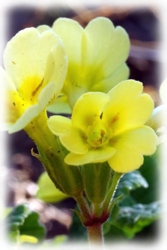 Information on the label: Perennial Primula with rosette forming scalloped leaves and clusters of large