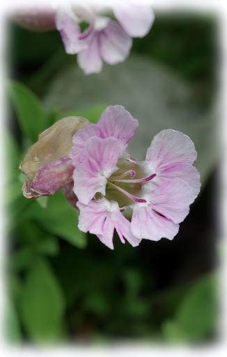 Silene uniflora ‘Rosea’Information on the label: A mound-forming alpine with grey-green leaves. Single pale pink flowers in summer. Height 8cm and Spread 30cm. Flowers June to August. Full sun or partial shade.Bought from: The Barn in Scorton.Planted in Simeon’s Garden: In June 2019.Last seen on the website in: 25th July 2023 photo a day photo gallery.