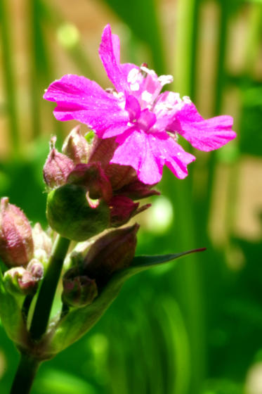Lychnis viscaria ‘Firebird’Information on the label: Showy pinkish red flowers from June to July. Any good soil. Height 50cm and spread 30cm.