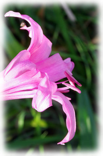 Nerine bowdenii Information on the label: Nerines are wonderful bulbs with long lasting, lily-like vibrant pink flowers in autumn. The exotic blooms, with distinctly waved and curved petals are held high on stems. Once the flowers fade strap-like rich green leaves emerge. Height 45cm and Spread 15cm . Last see on the website in: 29th September 2022 photo a day photo gallery, 24th September 2022 photo a day photo gallery,21st September 2022 photo a day photo gallery, 19th September 2022 photo a day photo galley.