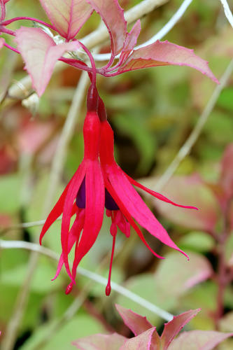 Fuchsia magellanica ‘Versicolour’Information on the label: This is robust fuchsia produces cream-edged leaves and single crimson and purple flowers in Summer and Autumn. Height 100cm and 100cm.Last seen on the website in: 21st September 2022 photo a day photo gallery.