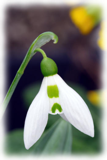 Galanthus elwesii ‘Snow Fox’ Information on the label: Long, bell shaped scented white flowers and prominent green central markings, Flowers from early Winter. Last seen on website in: 2nd March 2023 photo a day photo gallery, 21st February 2023 photo a day photo gallery, 15th February 2023 photo a day photo gallery.