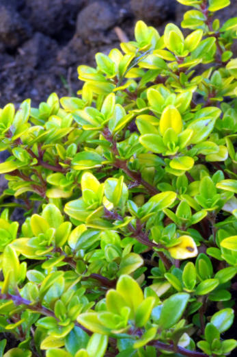 pink flower over fragrant golden leaves. Flowering from early to mid Summer. Height 10cm and spread