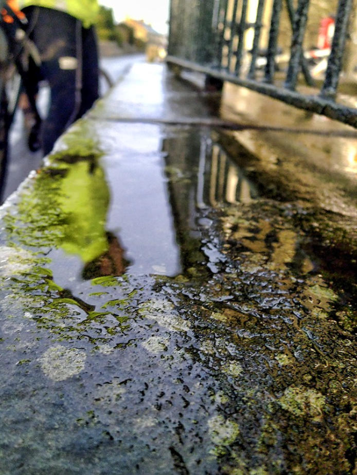 from the back about how muddy it was and the fact that the farmer had just thoughtfully trimmed his hedges