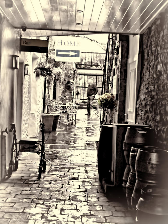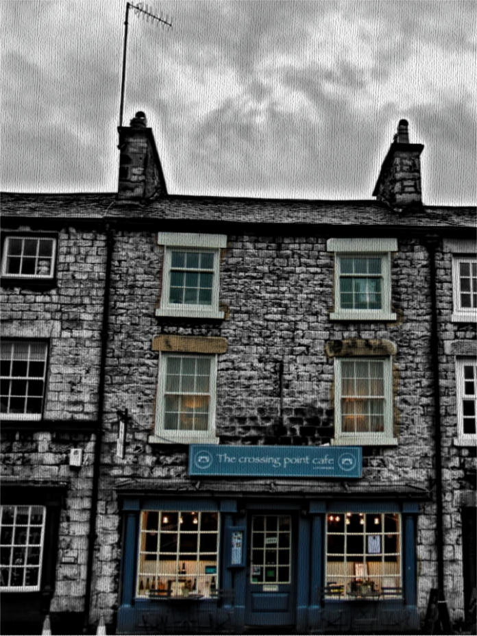 A view of The crossing point cafe in the Market Square in Kirkby Lonsdale