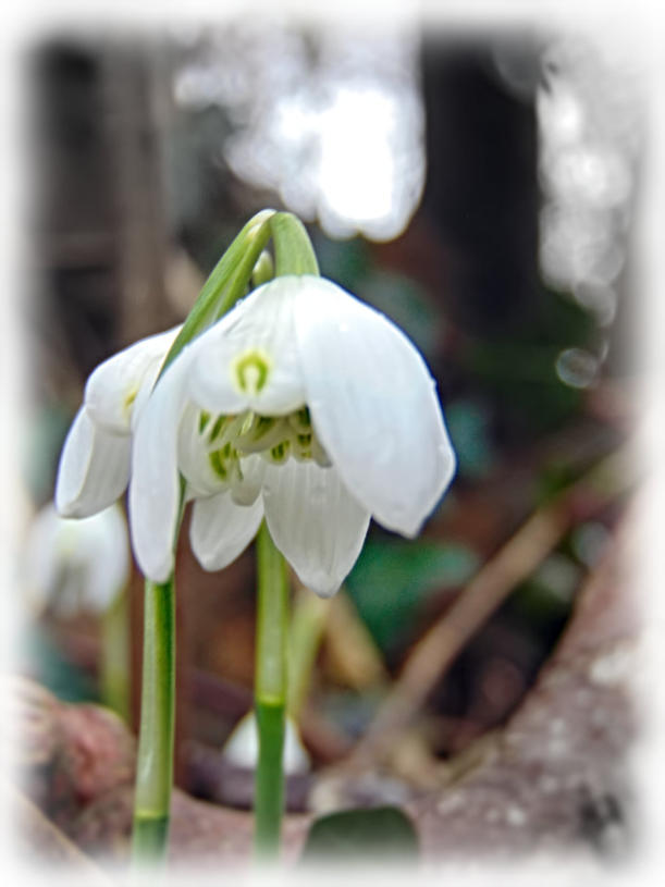 Snowdrops in flower at side of lane on the climb out of Gressingham