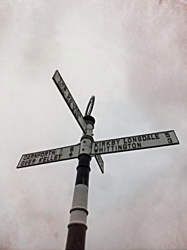 dropping down to Arkholme where I stop for some lunch on bench at the cross roads in the village.