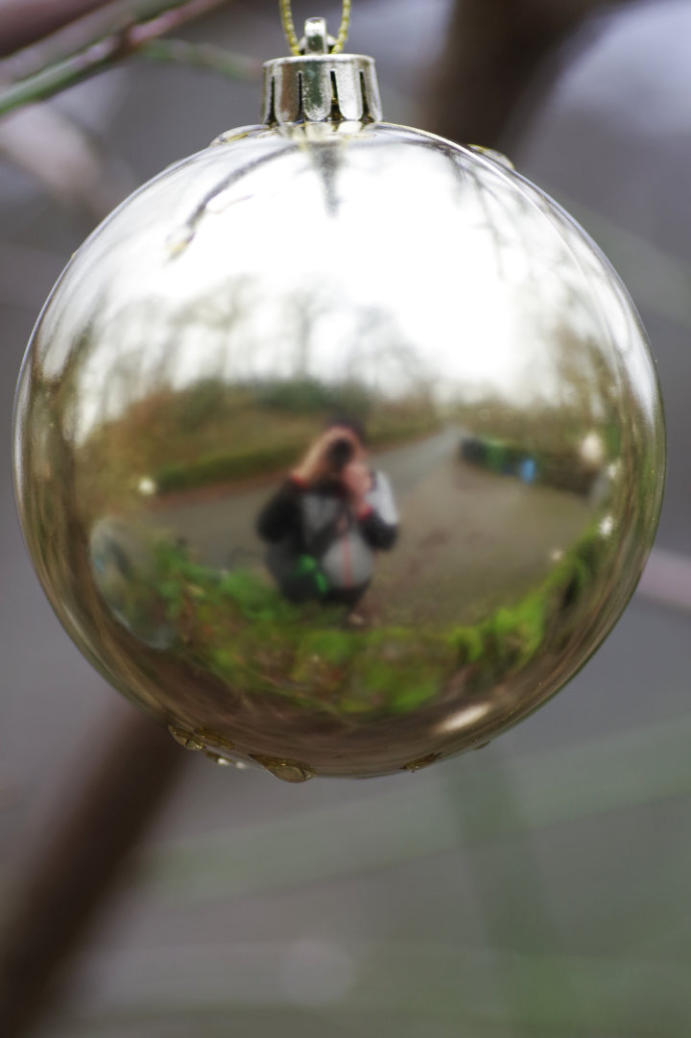 Reflections on Christmas decoration at side Potter Fell Road