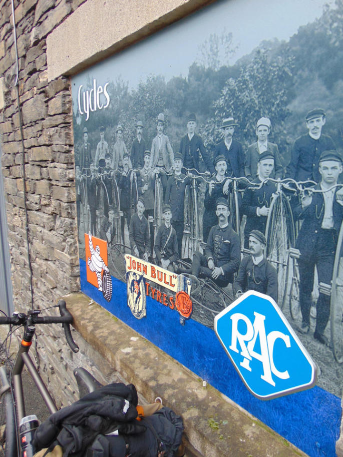 A old cycling photo outside the Lakeland Motor Museum