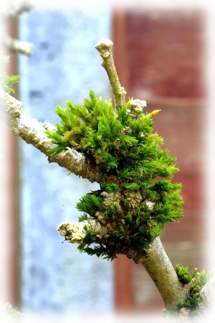 Moss on a Hibiscus in the back garden (You can see more close up view of the back garden at this link)