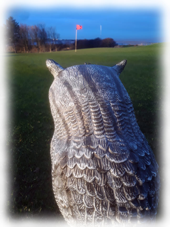 The owl of the first green: I took this photo with the mobile phone on the walk around the course this morning.