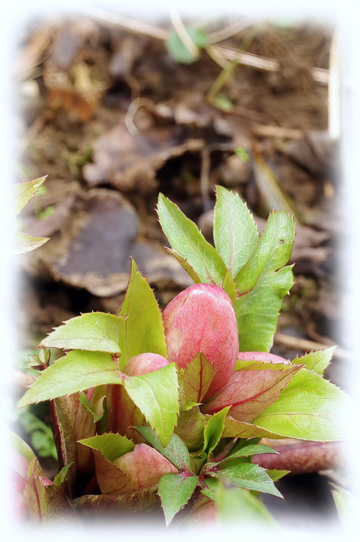 The flower buds of Helleborous ‘Pink Beauty’ in the back garden.