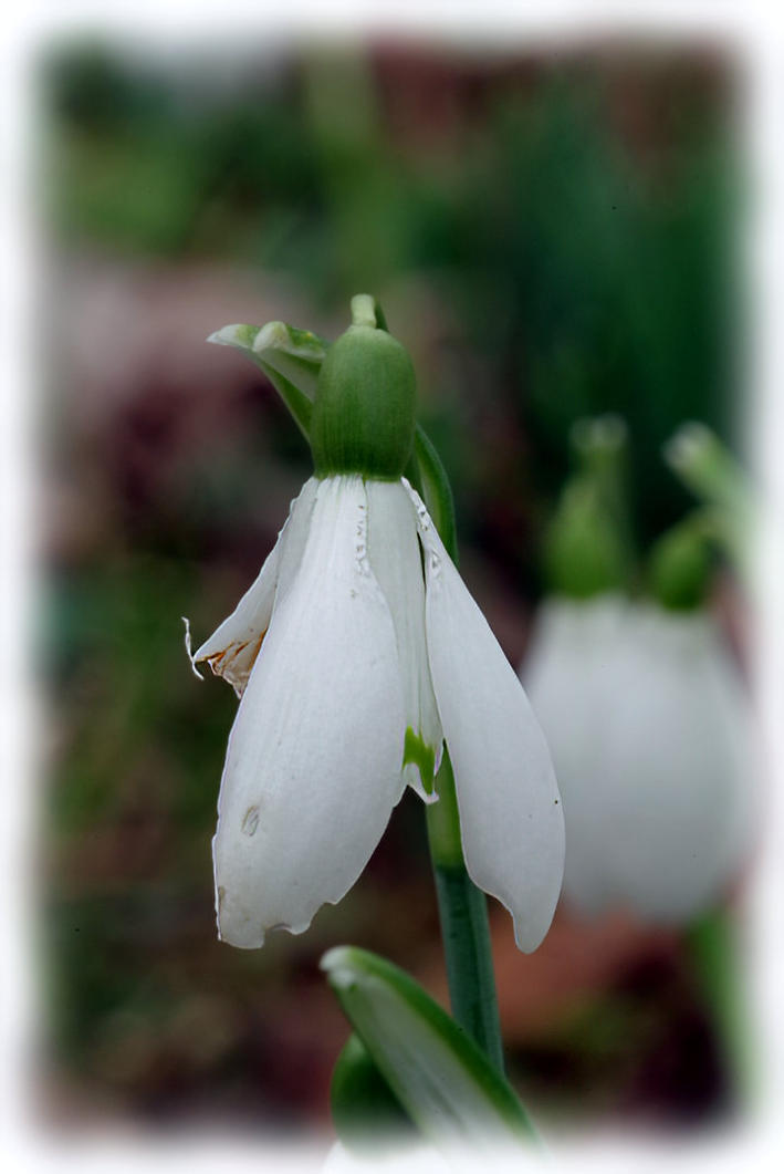 Snowdrop flowering on the village green in Borwick.