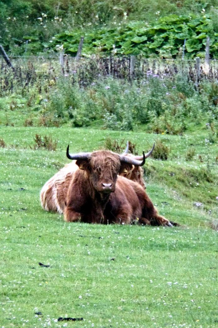 Highland Cattle in a field on the banks of the River Wenning.