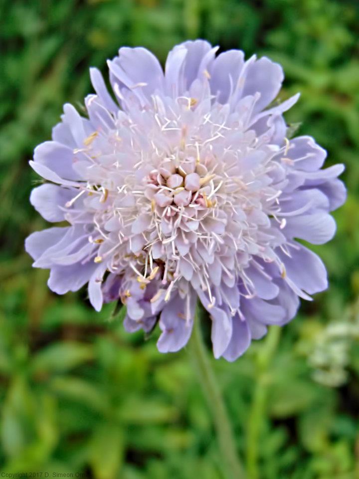 Field Scabious in flower at side of the lane.