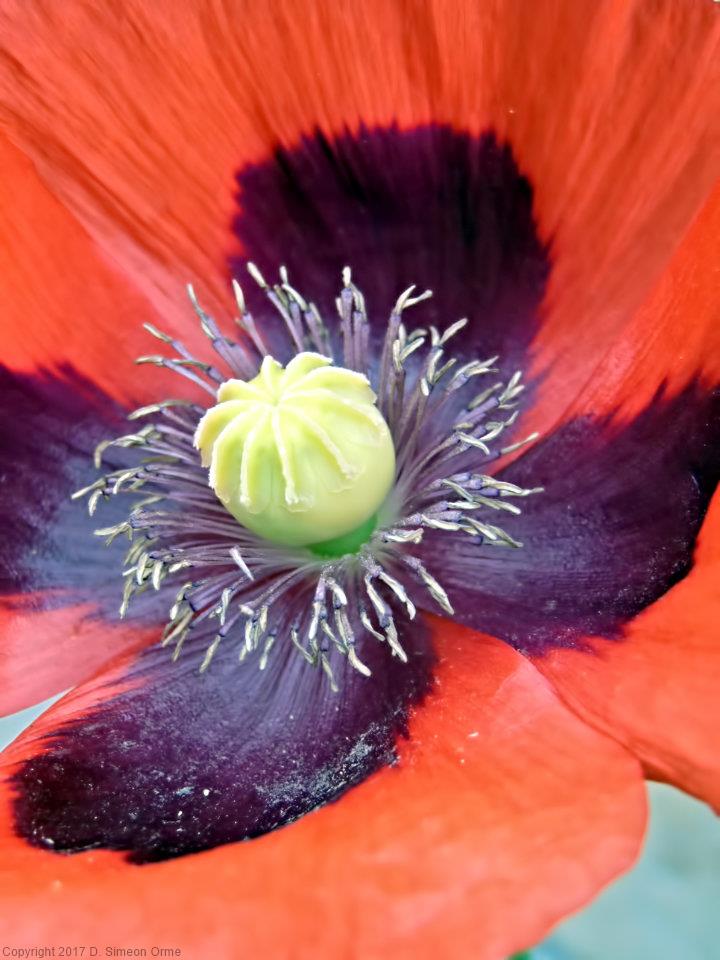 Common Poppy in flower at the side of the lane.