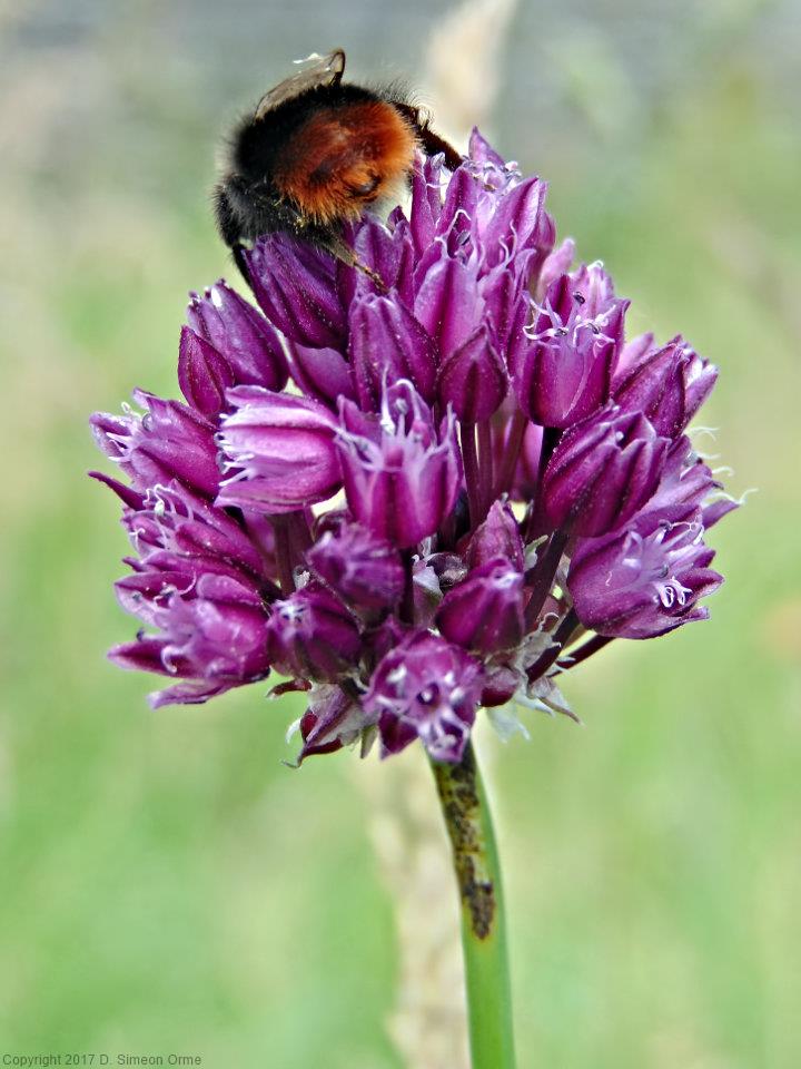 A bee on some sort of Allium (Onions and Garlic Family) in flower at side of cycle track in Kendal