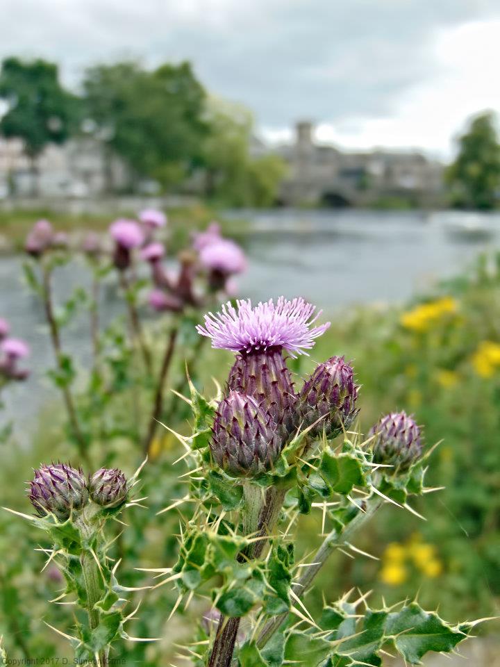 Thistles on the bank of the River Kent in Kendal.