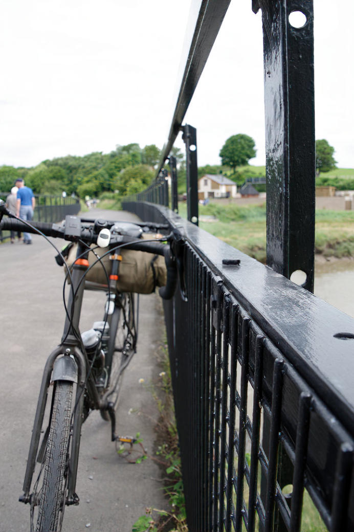 The view looking back across cycle path bridge over the River Conder towards Conder Green.