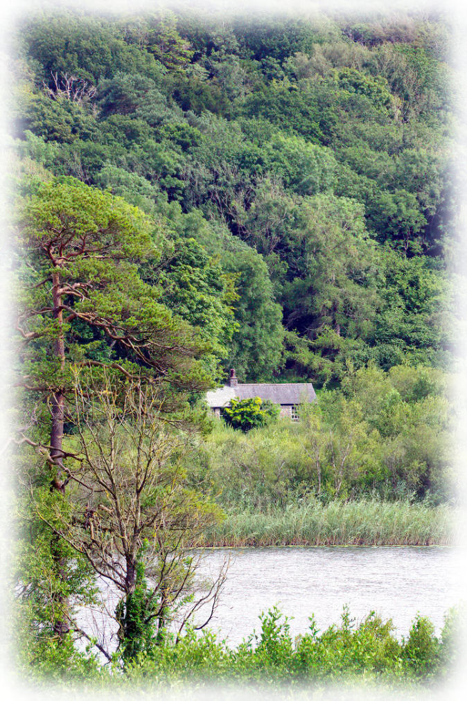 The view looking over Hawes Water taken from the bridleway near Challen Hall