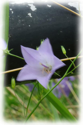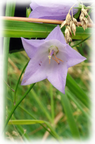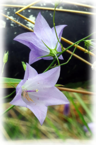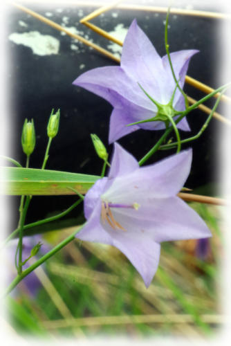 Harebells at side of towpath of the Lancaster Canal at locks at Tewitfield.