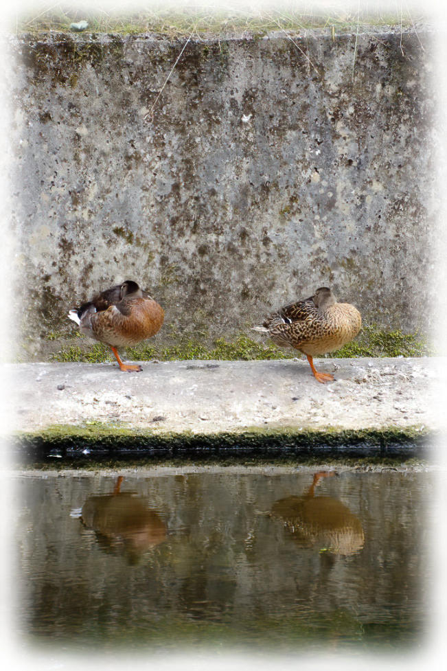 Two female Mallard Ducks at side of Lancaster Canal at Capernwray.