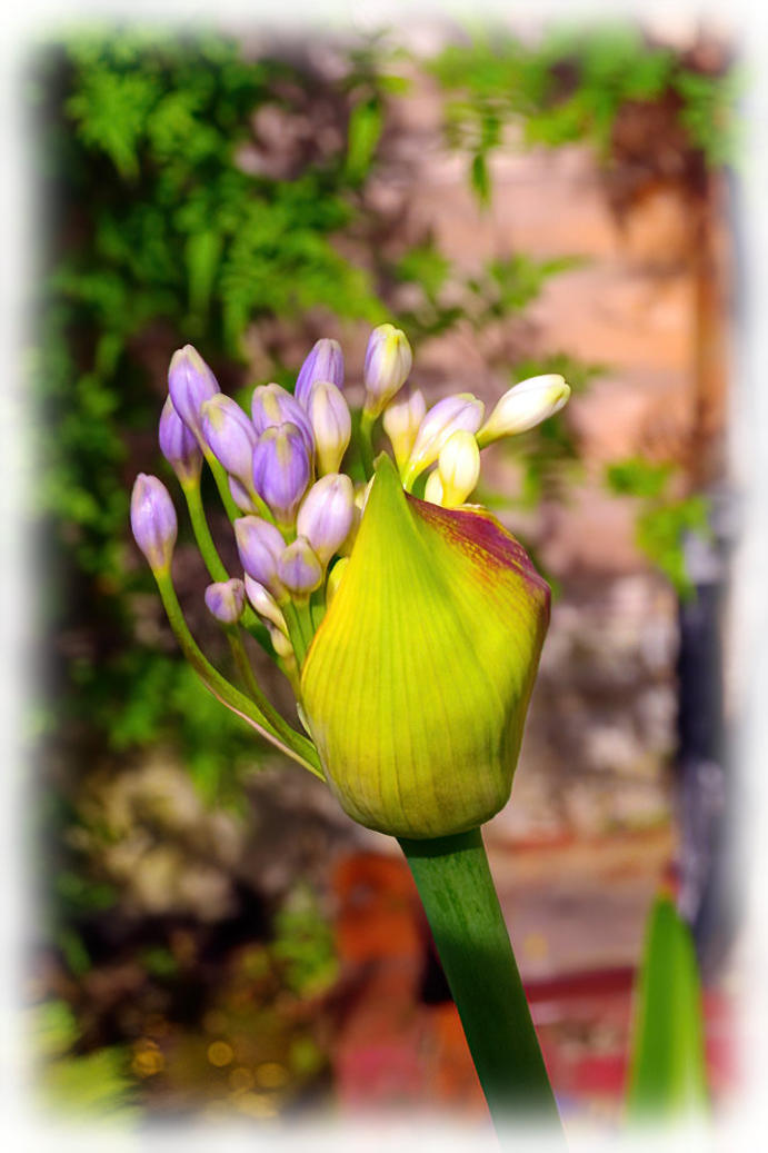 Agapanthus ‘ Amourette Blue’ coming into flower in the back garden