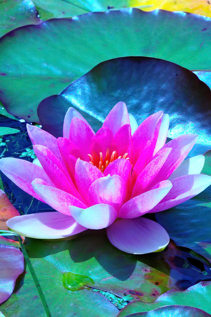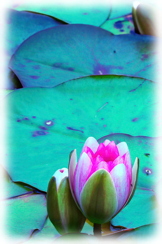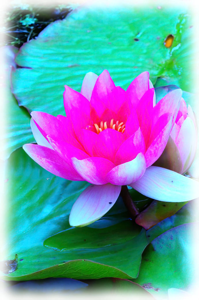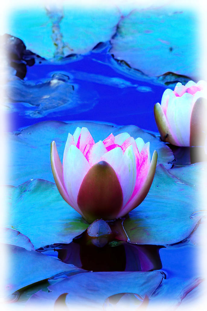 Water lilies flowering on the ponds by the 8th fairway and 9th tee on Morecambe Golf Course.