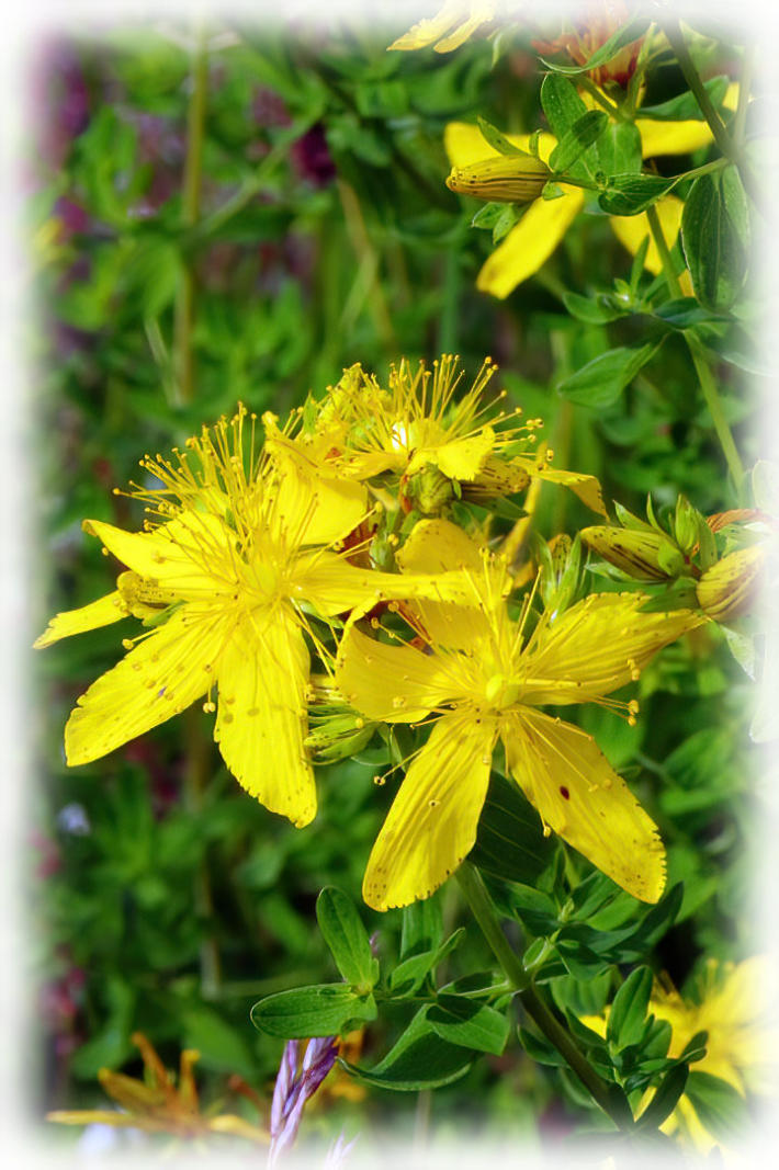 Perforate St. John’s wort flowering in the deep rough at side of 9th fairway on Morecambe Golf Course.