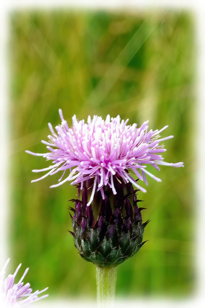 Creeping thistle flowering in the deep rough at side of 9th fairway on Morecambe Golf Course.