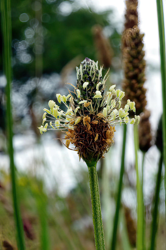 Ribwort Plantain flowering in the deep rough at side of 9th fairway on Morecambe Golf Course.