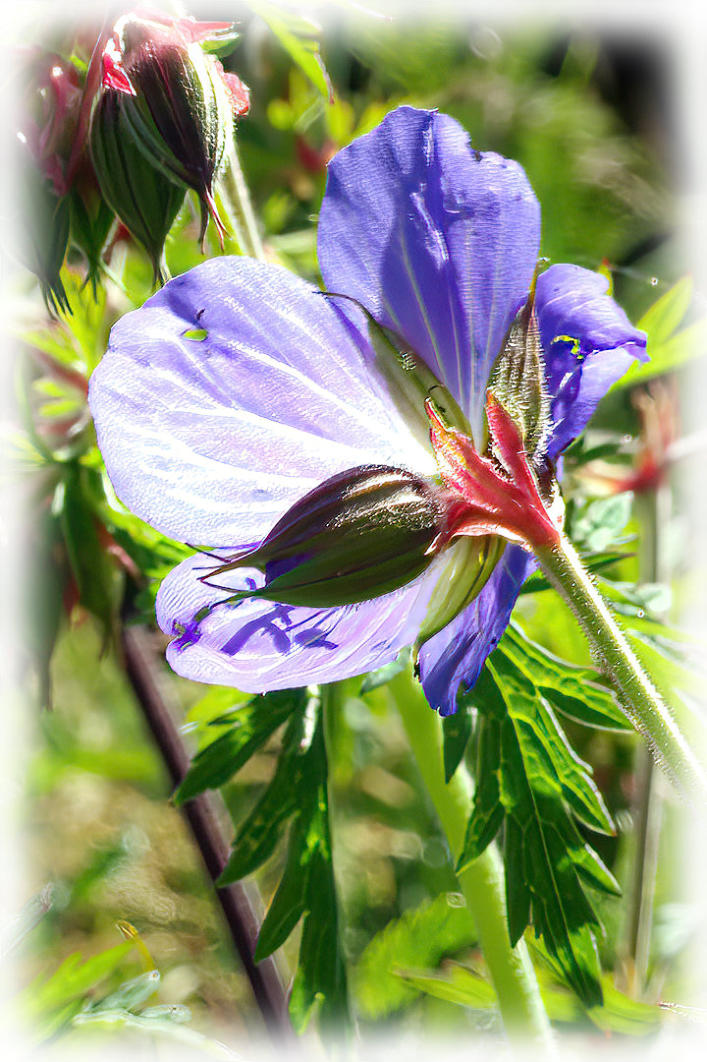 Meadow Crane’s-bill flowering on the banks of the River Wenning in Wennington.