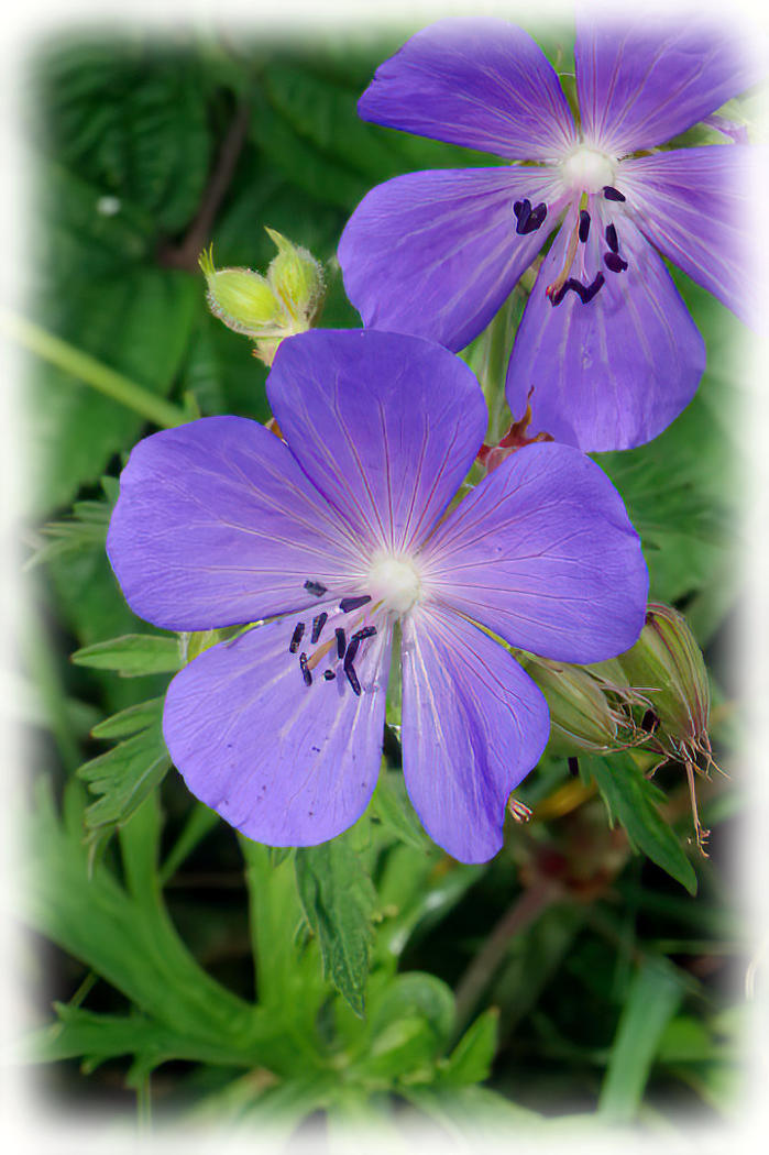Meadow Crane’s-bill flowering at side of towpath along side the Lancaster Canal.