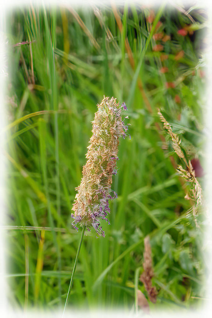A grass flower head at side of towpath along side the Lancaster Canal.