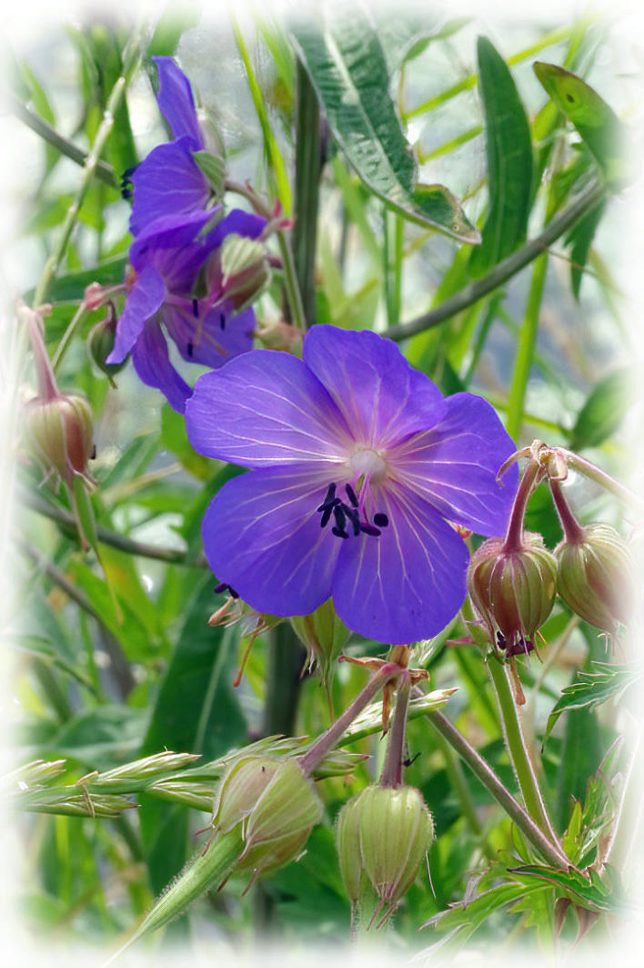 Meadow Crane’s bill at side towpath of the Lancaster Canal.