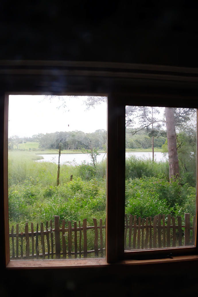 The view looking through the window of the Summer House