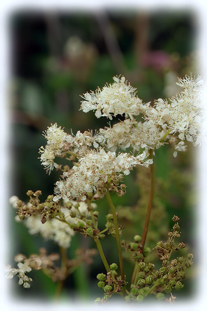Meadowsweet flowering at side of the path around Hawes Water.