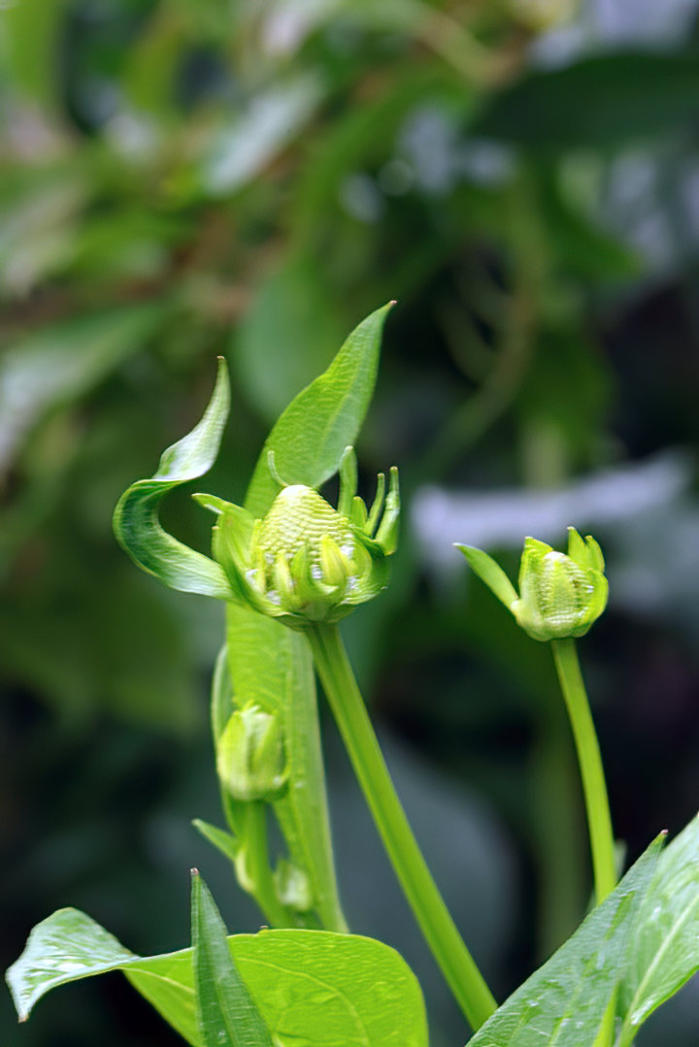 The flower buds of Rudbeckia laciniata ‘Luligold’ in the back garden.