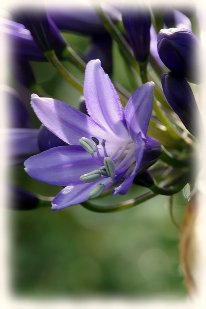 Agapanthus ‘Bressingham Blue’ flowering in the back garden.