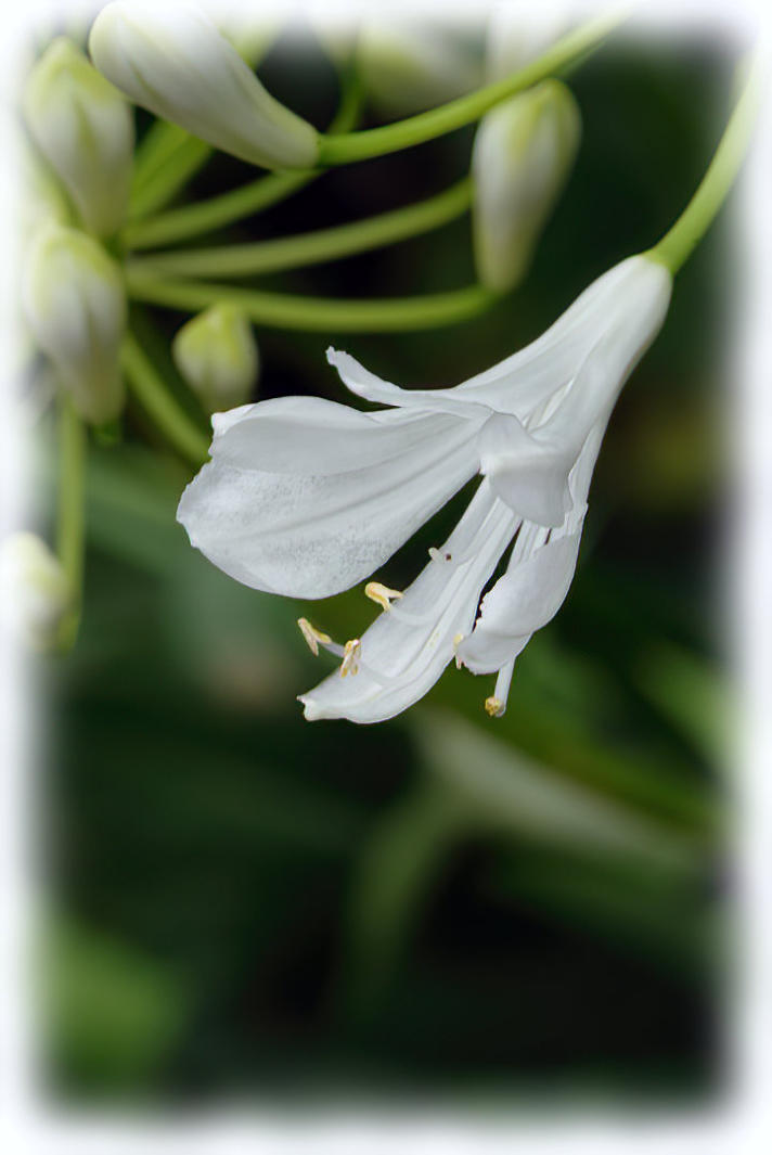 Agapanthus ‘Polar Ice’ flowering in the back garden