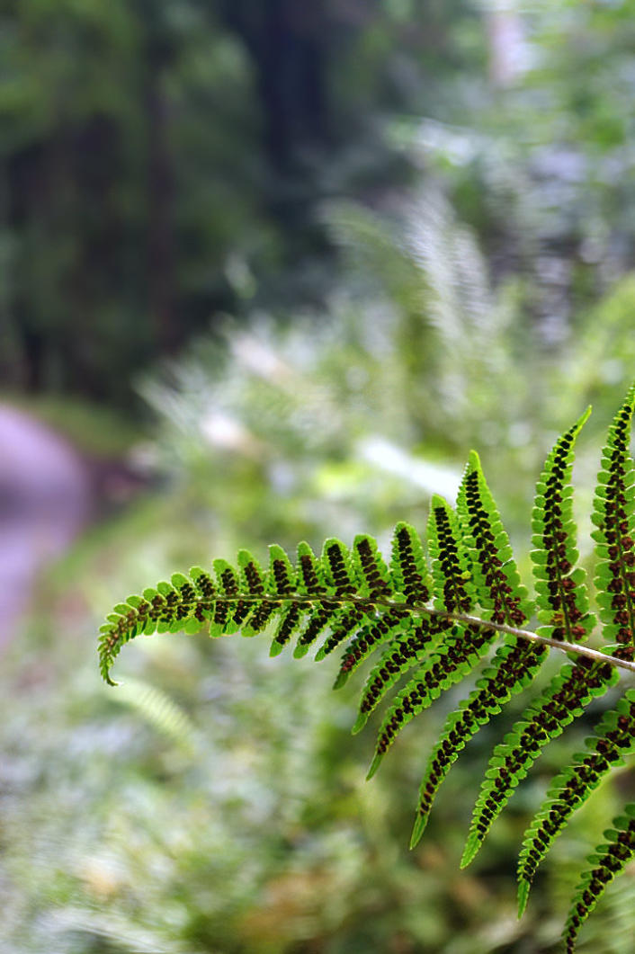 Close ups of fern fronds at side of the lane through Low Park Wood.