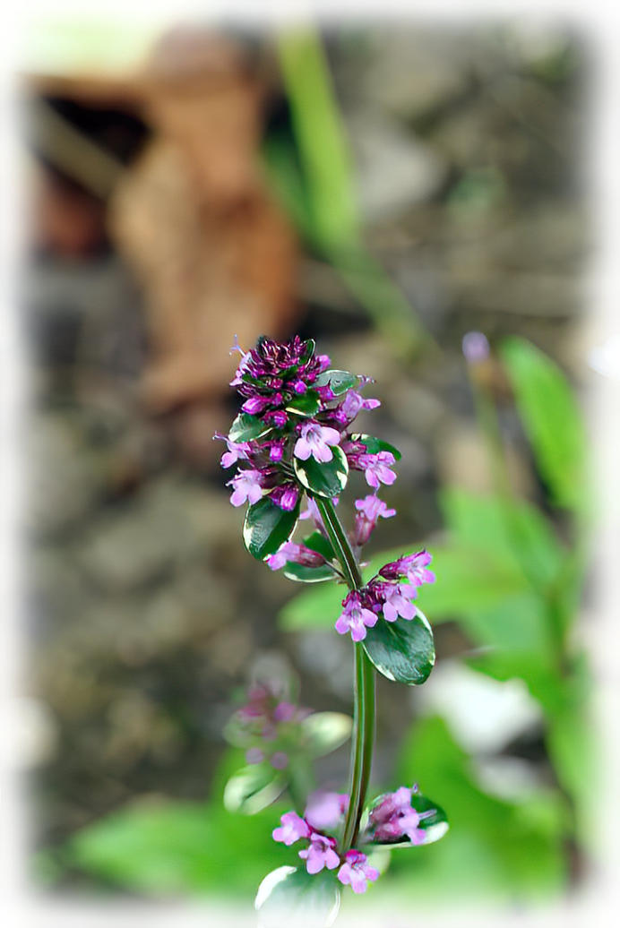 Thymus pulegioides ‘Foxley’ flowering in the back garden