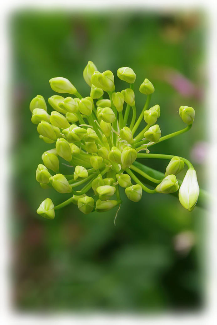 The flower buds of Agapanthus ‘Polar Ice’ in the back garden.