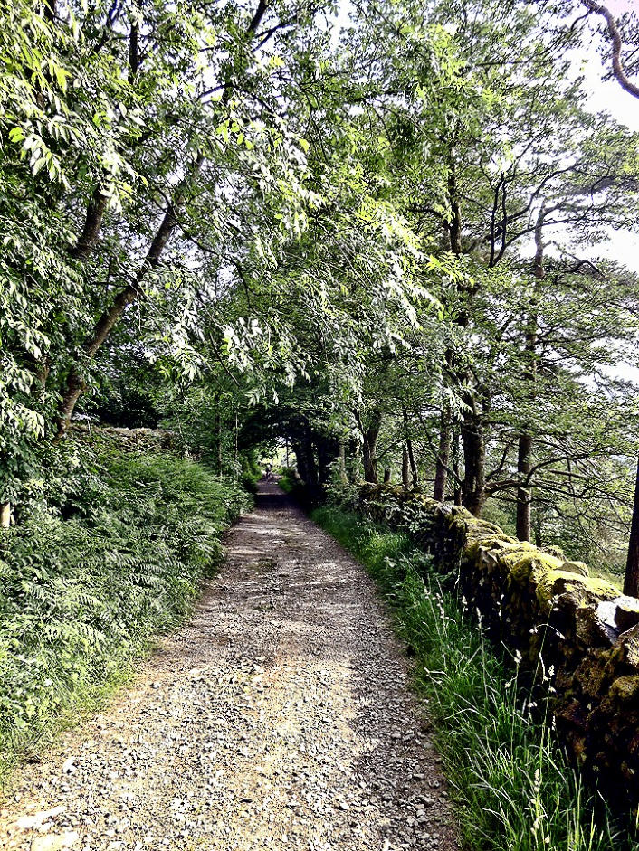 lanes up to Loughrigg Tarn where we follow the bridleway around tarn and then following our next track over the