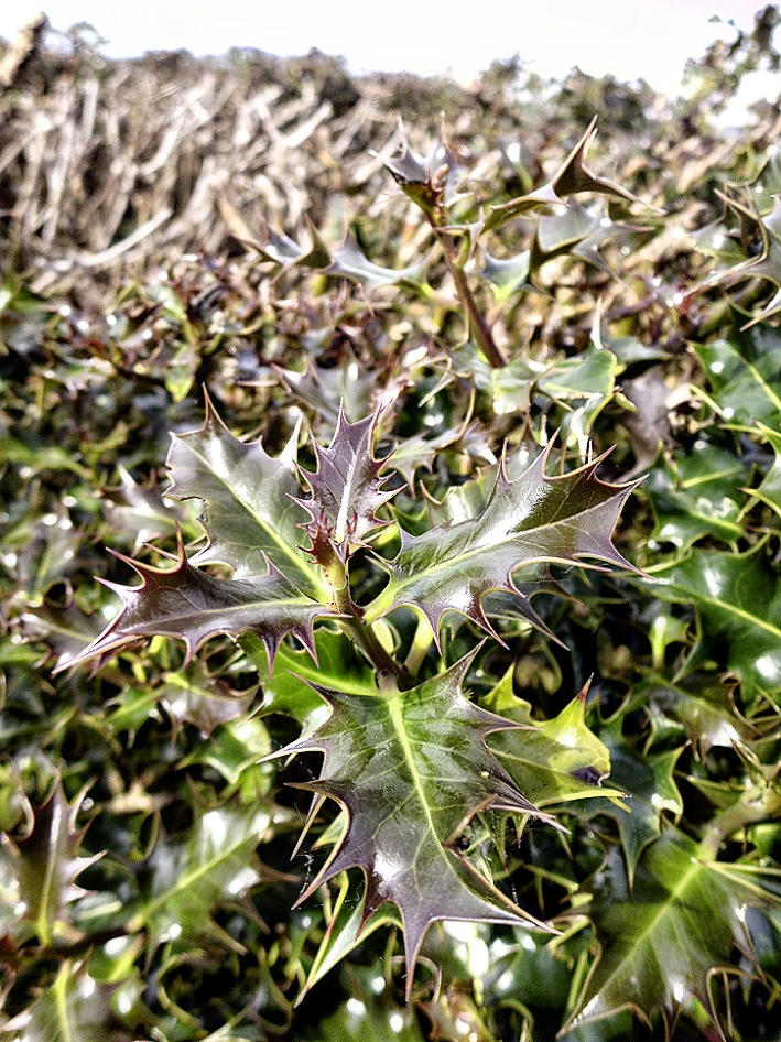 Holly leaves in the hedge at side of Mewith Lane.