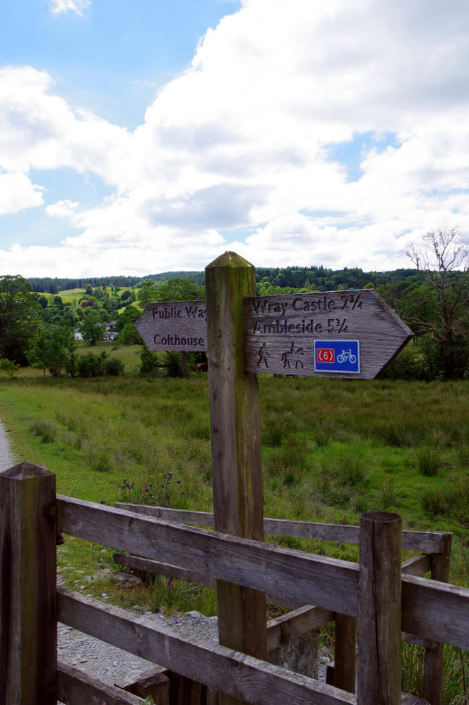 The signpost where we left the cycle path to follow the Public Way to Colthouse.