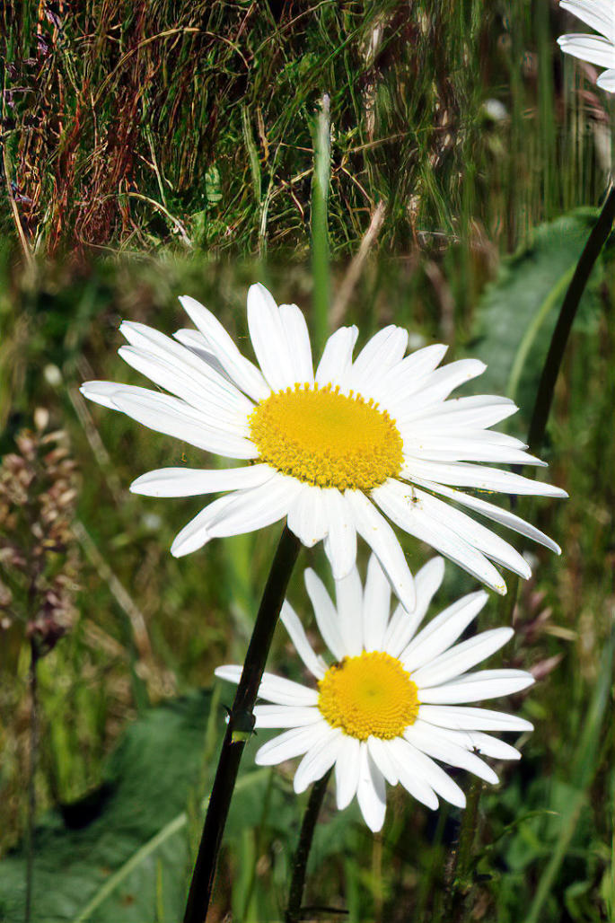 Ox-eye Daisy flowering at side of cycle path near Halton.
